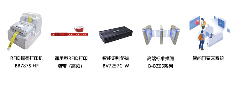 智能門票云系統是一套處理門票打印和檢票門禁管理的云系統方案。門票打印通過RFID打印機BB787S HF進行RFID腕帶打印,票碼系統自動生成,票碼以條碼打印在識別腕帶上同時寫入RFID信息,一人一票專用,防止假票和一票多用,智能終端接收到系統票碼信息后,根據票碼規則進行檢票驗證,驗證通過門禁自動開啟,簡化檢票流程和節約人工檢票成本,提高檢票效率。