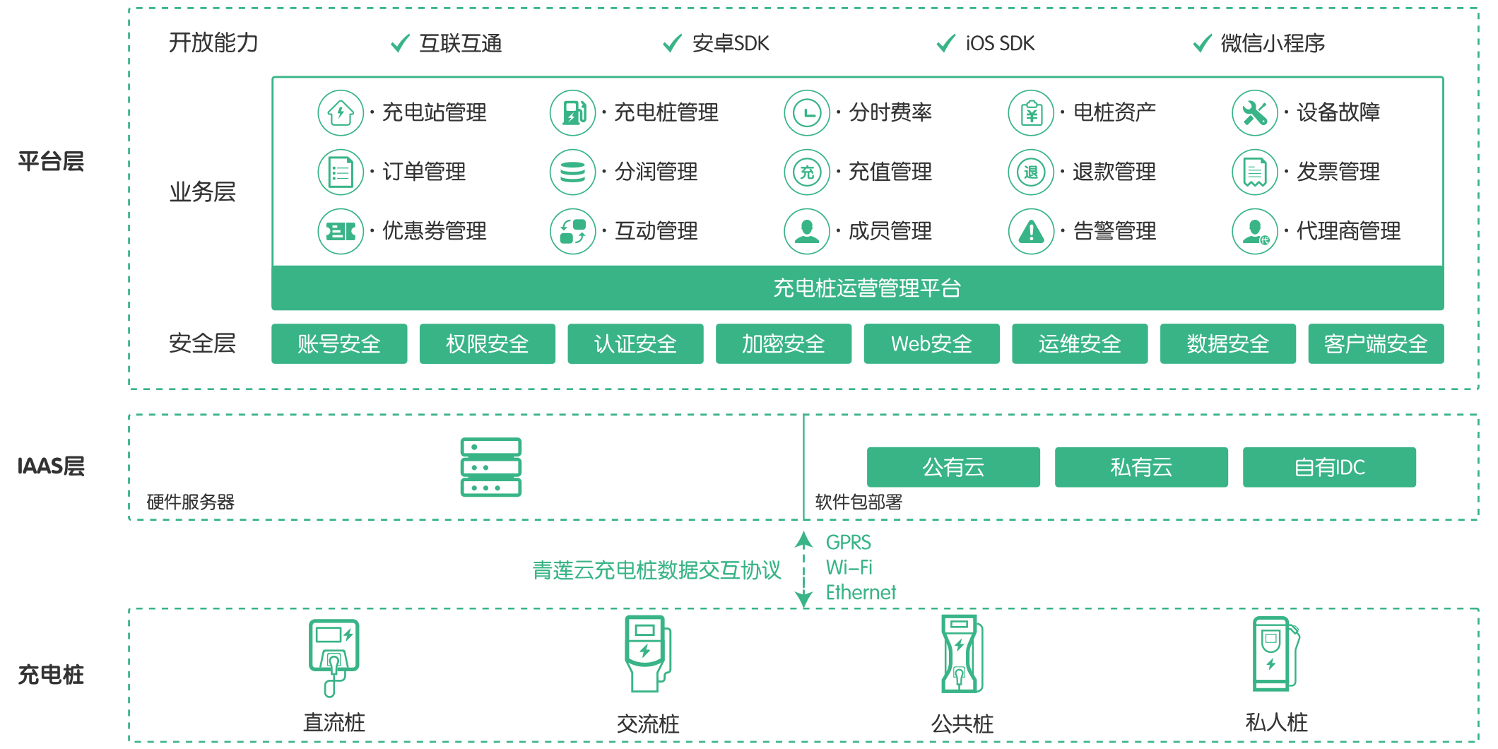 標準化產品。通過私有化部署幫助企業快速構建自主可控的充電樁運營管理平臺。