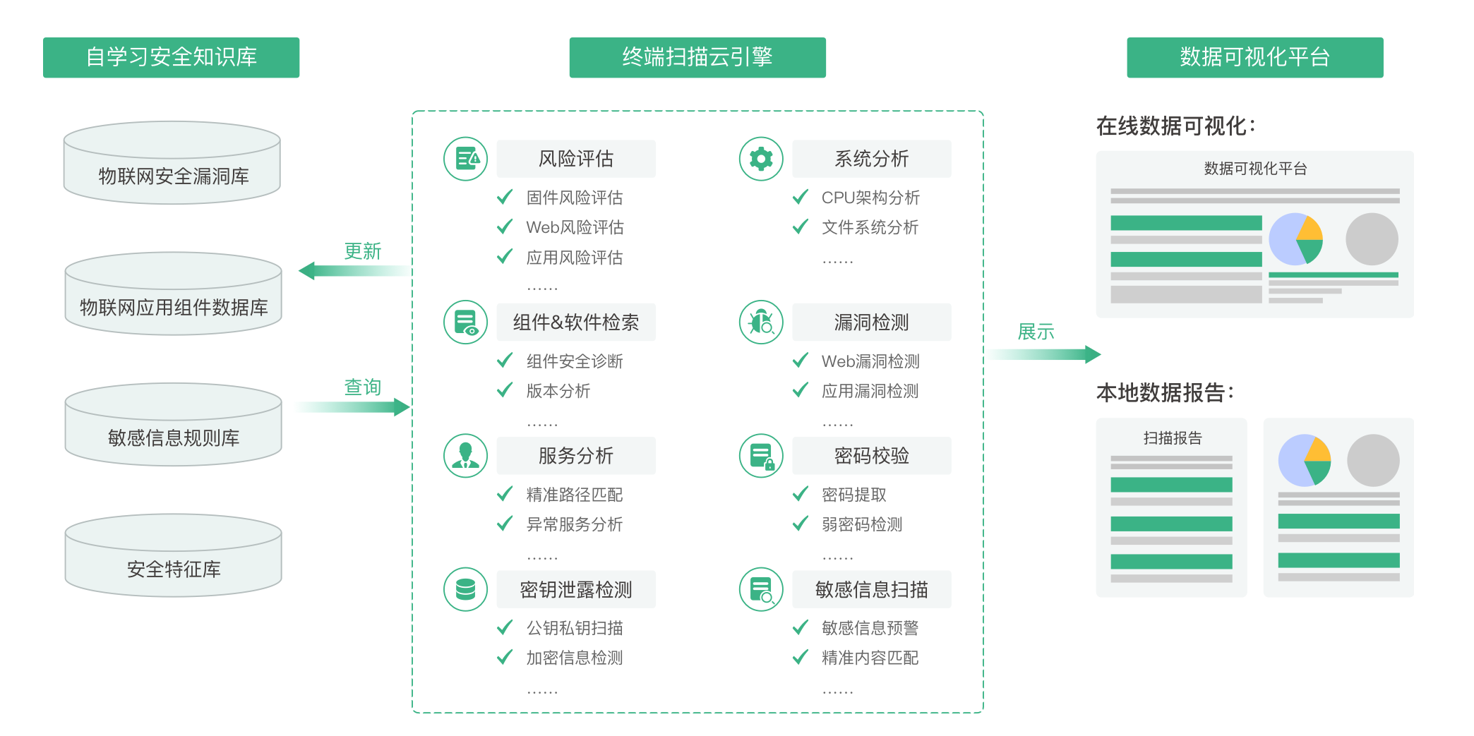 以在線SaaS服務的形式提供覆蓋設備固件、云端API接口、客戶端APP的端到端自動化安全掃描服務,并出具可下載、可復測的企業專屬安全檢測報告,幫助企業建立屬于自己的物聯網安全測評流程,提高物聯網產品研發人員的安全意識。