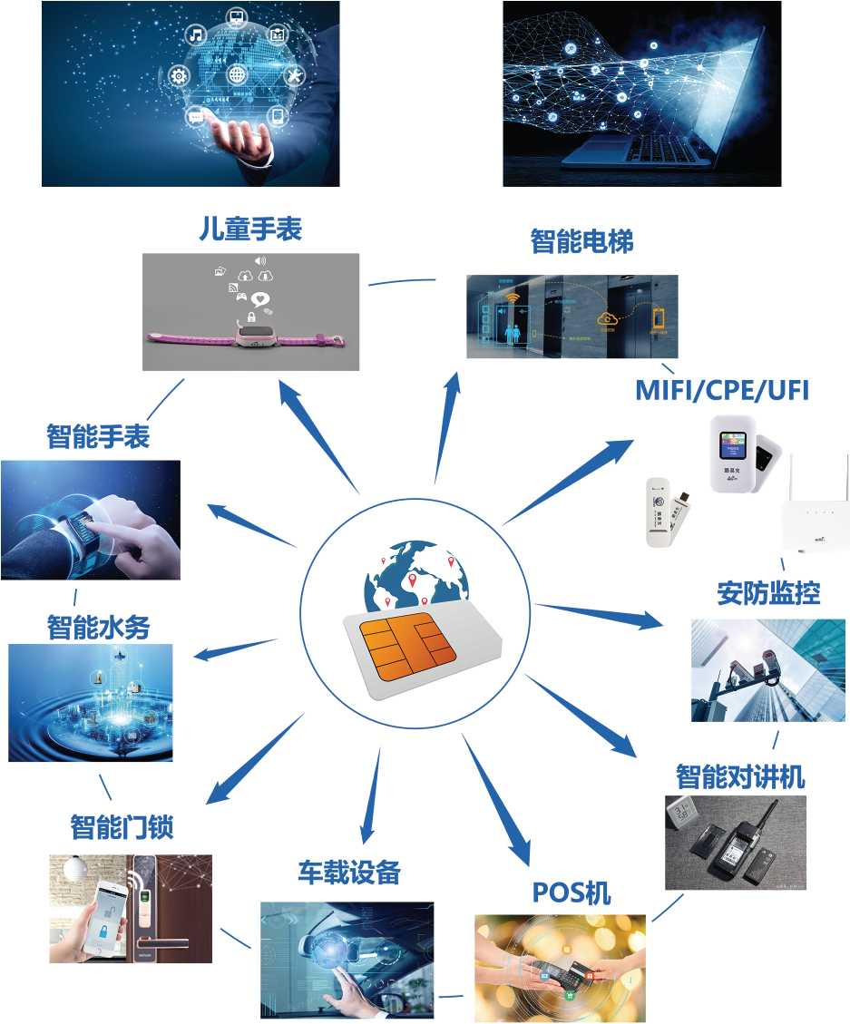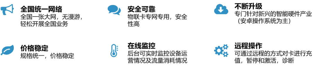 由運營商(中國移動、中國聯通、中國電信)提供的5G/4G/3G/2G卡。硬件和外觀與普通SIM卡完全一樣加載針對智能硬件和物聯網設備的專業化功能,采用專用號段和獨立網元,滿足智能硬件和物聯網行業對設備聯網的管理需求,以及集團公司連鎖企業的移動信息化應用。
