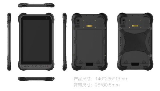 該款8寸三防智能手持機適用于工業消費品市場,外觀輕薄漂亮,采用高通驍龍8核處理器,并且引入了防水塵防摔耐低溫的防護性能。支持最新安卓10操作系統,同時支持拓展背夾拓展掃描,紅外,UHF RFID,F9P 高精度定位等行業功能。