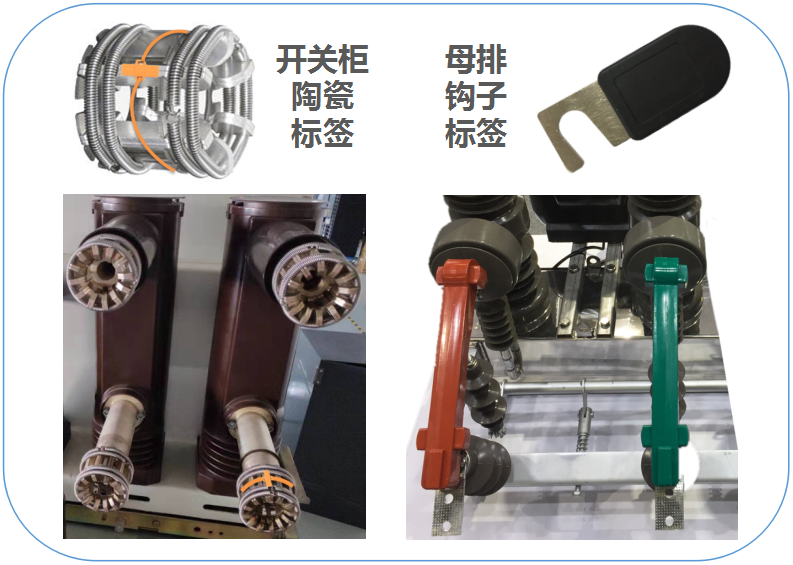 開關柜的觸頭、母排的連接處,是溫度發生異常、需要監測的重要部件,宜鏈公司 RFID抗金屬無源測溫標簽,通過專用綁帶固定在觸頭和母排部件的測溫點,經由部署在二次設備室的 RFID 讀寫器讀取標簽溫度值并上傳至溫度監控管理平臺,快速便捷地實現了無源無線遠程溫度監控與管理。