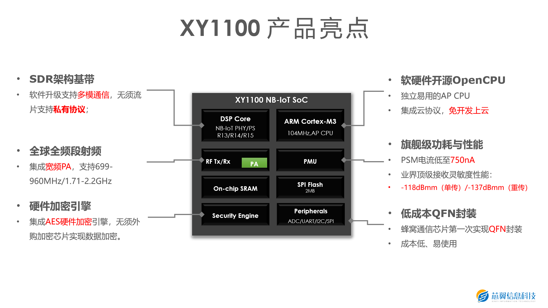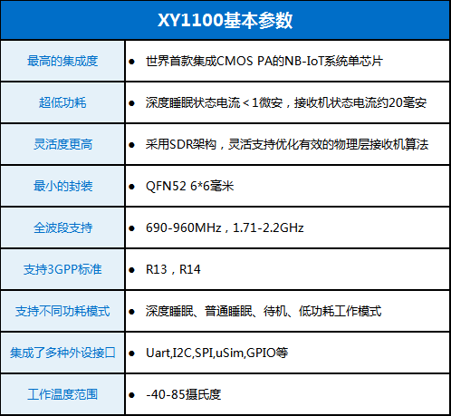 芯翼信息科技XY1100是全球首款量產的片內集成全頻段CMOS PA的NB-IoT芯片,目前也是市面上出貨量最大的第三代NB-IoT量產芯片之一。