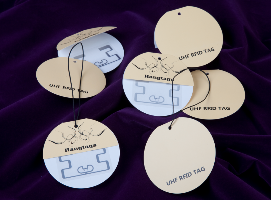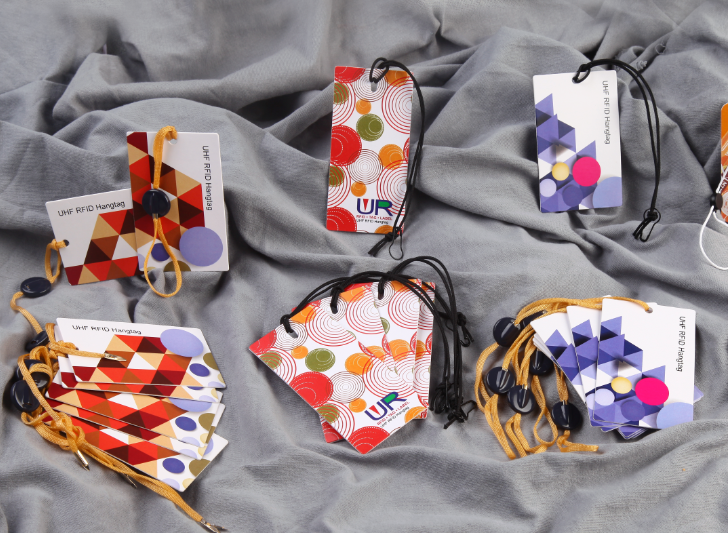UHF RFID張裝掛牌一般以紙張為主要原材料,把UHF RFID Wet Inlay以三文冶方式復合于紙牌內或直接貼合吊牌表面。而此類紙牌因可使用柯式印刷或數碼打印,有著較豐富色彩的構圖及特別的印刷效果。