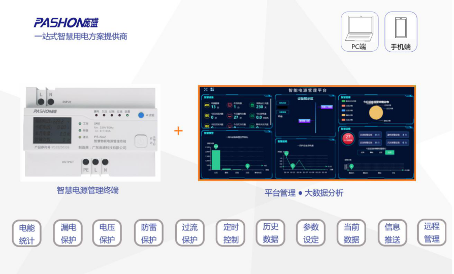 智慧物聯電源管理終端和四路智能開關都可實現用電系統化管理,由智慧終端設備和軟件系統平臺組成,具有用電保護、遠程操作控制、電量統計、定時等功能,同時實現大數據統計管理。