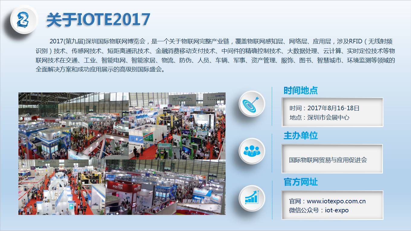 2017(第九屆)深圳國際物聯網博覽會將于2017年8月16-18日在深圳會展中心2、3、4號館舉辦。