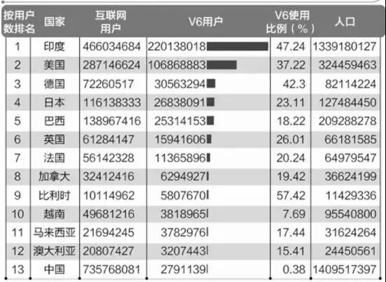 作為頭號互聯網用戶大國,中國的IPv6用戶普及率僅有0.38%,排名第67位。
