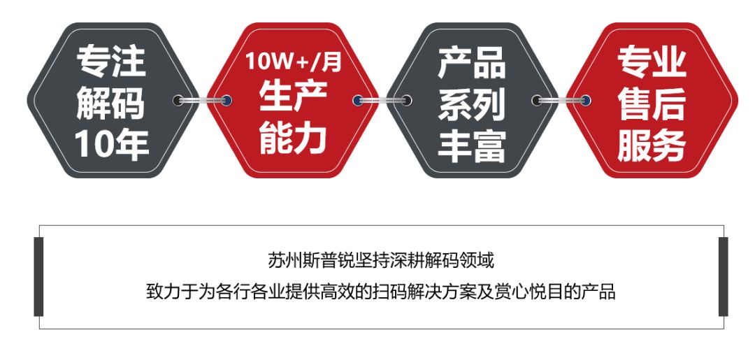 作為一家以自主研發為主導,集銷售、生產、服務于一體的現代高科技企業,斯普銳擁有算法、光學、軟件、機械、電子等研發團隊,堅持深耕影像讀碼領域,為各行各業提供專業、高效的影像讀碼解決方案及賞心悅目的產品,致力于打造專業的影像讀碼設備品牌,將工業領域的解碼技術應用到零售、金融、交通、醫療等各領域,為各種場景提供掃碼解決方案。斯普銳憑借解碼算法的多年積累和優化,針對低對比度碼、破損碼、污漬碼、反光碼及極小碼、DPM碼等復雜應用的讀取極致優化,使掃碼設備更高效識讀各種條碼。