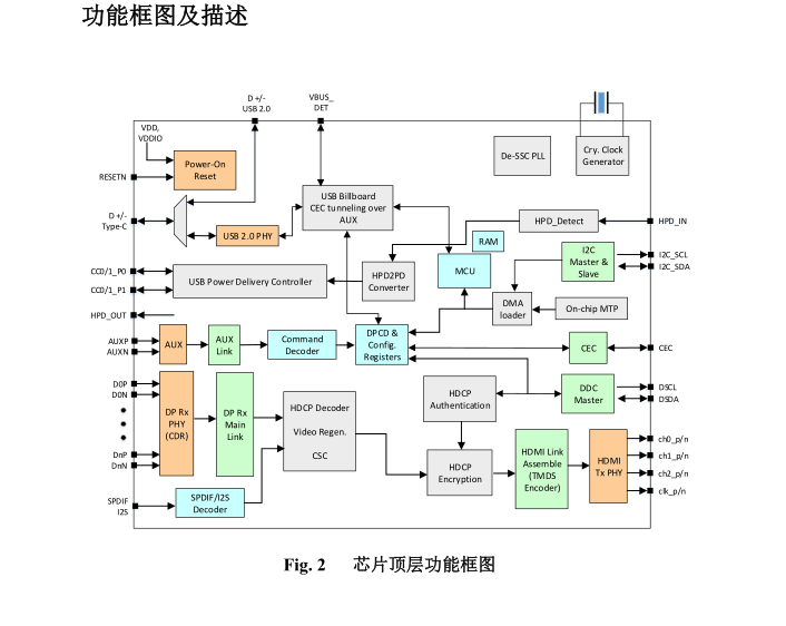 支持 I2C-over-AUX 通道傳輸,支持 CEC 在 AUX 通道的透傳功能