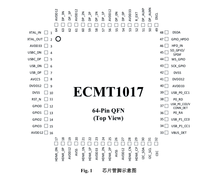 2.ECMT1017 — 用于 USB Type-C 的 DP-to-HDMI 轉換 芯片