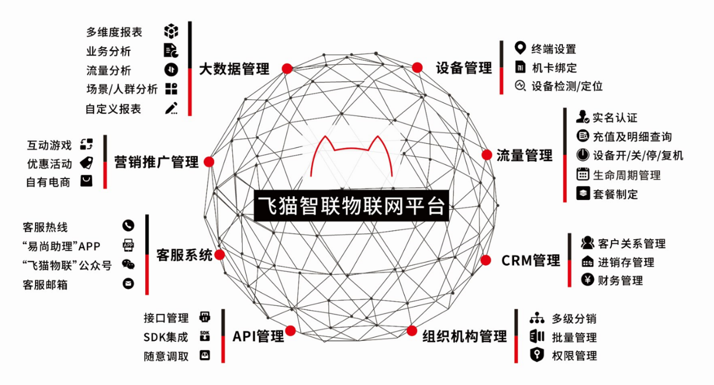 飛貓智聯物聯網卡+IOT管理平臺提供靈活、實用、可快速集成的API接口