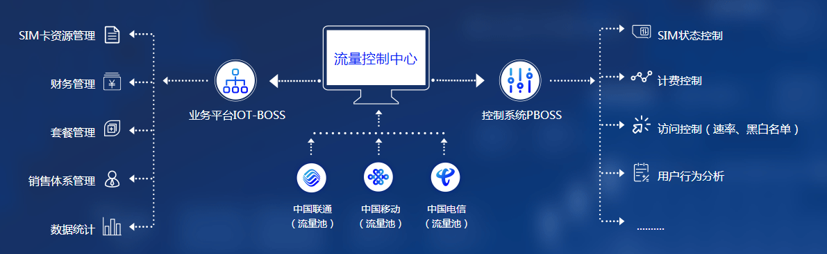 整合移動、聯通、電信三大運營流量資源,形成獨有的物聯網流量管理系統